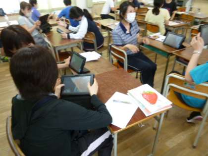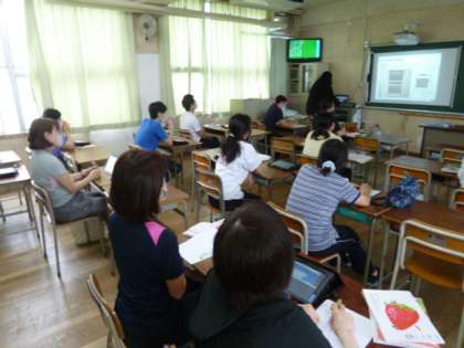 6月12日(金)放課後にICT研修会を行いました。タブレットの使い方やアプリケーションの研修をしました。参加した先生たちは研修した内容を、どのように授業に活かすかイメージしながら、話し合いをしていました。