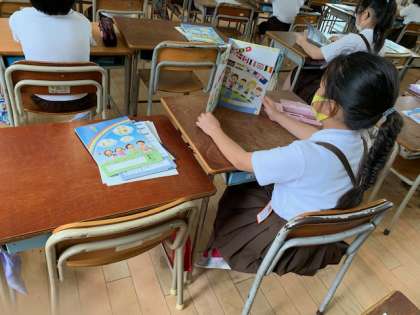 3年生になって初めての外国語。少しドキドキ。少しはずかしい。でも楽しそう!そんな気持ちでいっぱいでしたね。わからなくても平気♪大丈夫♪