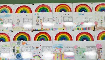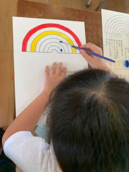 絵の具で混色の勉強をしました。すてきな虹がたくさん完成しました♪