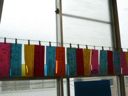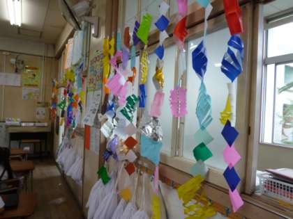 短冊の向こうの空は分厚い雲に覆われていますが、みんなの未来は、満天の星空のようにキラキラ輝いていますよ。