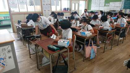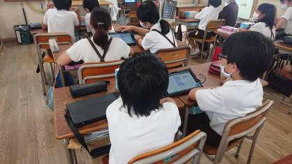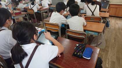 6年4組のプログラミング学習の様子です。
