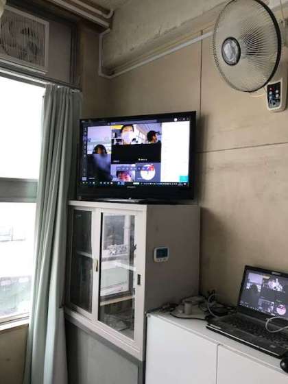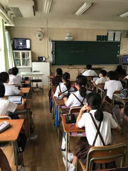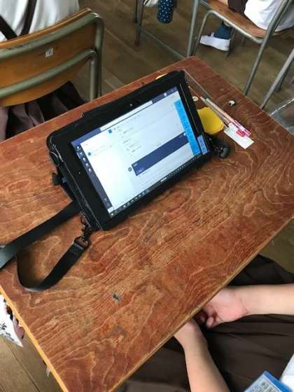 Teamsというチャット機能の使い方を学習しました。Teamsを使うと、家と学校でのオンライン授業が可能になります。みんなの顔がテレビ画面に映りだした際には、大盛り上がりでした。