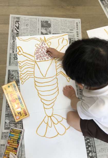 ザリガニをよく見て、細かいところも丁寧に描きました。