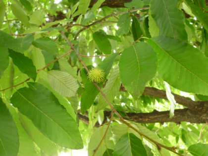 (写真1)クヌギの木です。どんぐりの帽子の部分(殻斗)がずいぶん大きくなっています。