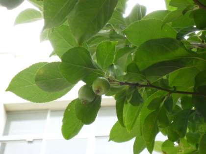 梅雨の晴れ間に、中庭の実のなる木を見上げてみると・・・