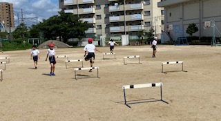 なかなか天気に恵まれず、外で体育をする機会がなかなかありませんでしたが、なんとか晴れて、ハードル走をすることができました。
