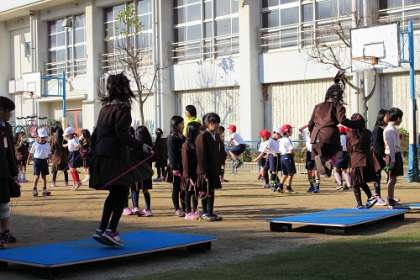 それぞれ学年に配られている「なわとびカード」クリアを目指して、練習に励む子供たちでした。