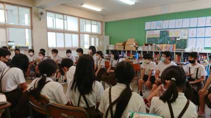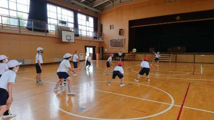 休み時間の様子です。ドッジボールをして友だちと楽しく遊んだり、みんな遊びではなんでもバスケットをして遊んでいます。大盛り上がりでたくさん笑顔が見られました。