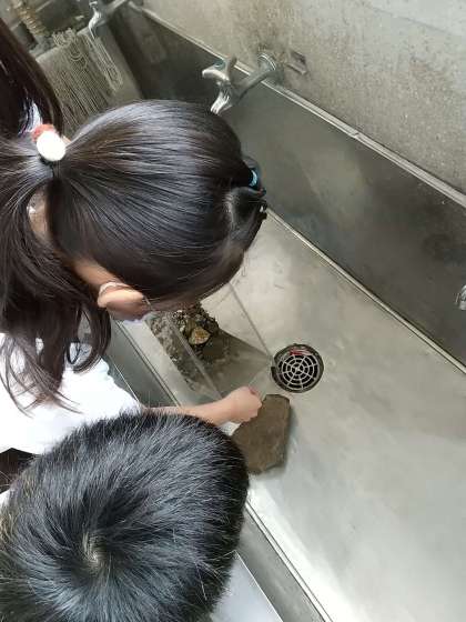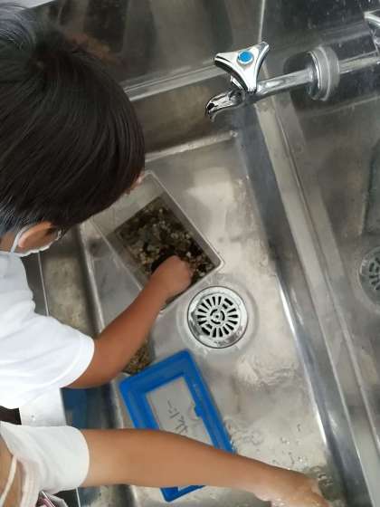 ザリガニの世話を、生き物係やグループでしています。えさやりや水の入れ替えなどを協力してしています。ザリガニを触れない子も、砂利を洗ったり、水を入れたり、自分にできることをしています。これからも、大切に育てましょう♪