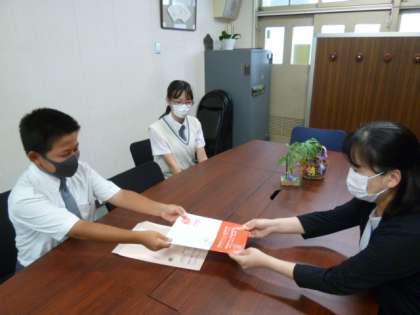 本校の卒業生が、母校訪問にやってきました。大阪市立咲くやこの花中学校の2年生です。