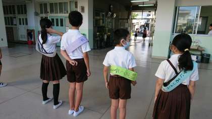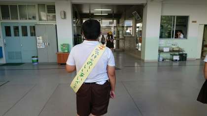 今週は、あいさつ強調週間です。運営委員会のみなさんが毎朝ピロティや廊下に立ってあいさつをしています。
