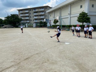 雷がなったため、途中で中止になり全員がボールにさわることはできませんんでしたが、参加しようとする姿は見られたので、この調子で授業に取り組んでもらいたいです!