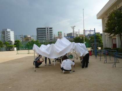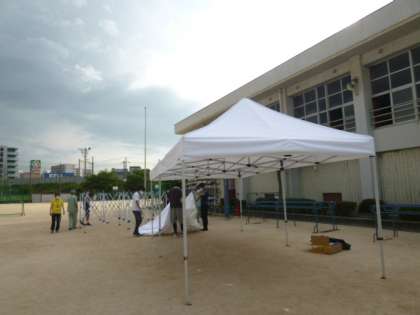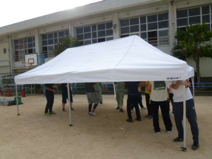 東淀川区の「学校教育環境整備事業」の一環として、学校にテントを2張いただきました。