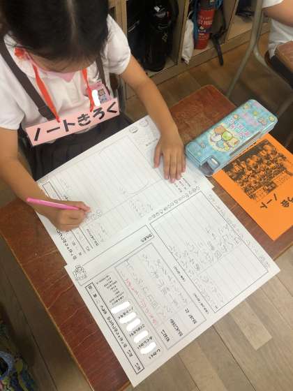 学級活動の時間に2学期の係を決めました。司会グループ(司会・副司会・黒板記録・ノート記録)を決めて初めての話し合い活動で係を決めました。じゃんけんや多数決ではなく、話し合いで自分の意見を伝えてなりたい係を決めます。初めてですが、楽しい係活動をつくろうと自分の意見を進んで発表できる児童も見られました。