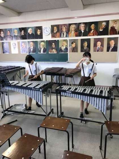 卒業コンサートに向けた放課後の練習の様子です。楽譜を見ながら一所懸命に練習していました。