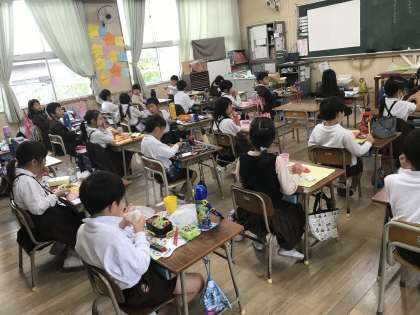 今日は、残念ながら遠足に行けませんでしたが、お家の人に用意してもらったお弁当を「おいしい!」と嬉しそうに食べている姿が見られました。次遠足へ行く時も、楽しみですね(^^)♪朝から準備してくださった保護者のみなさま、ありがとうございました。