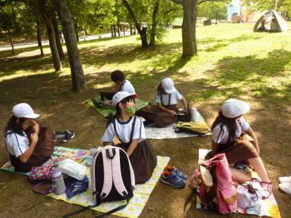 自由時間が終わり、手洗い・うがい、消毒をしっかりし、昼食場所へ移動。