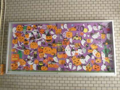 日本でもすっかりおなじみになったハロウィンに向け、今月の玄関掲示は、4年生の力作です。