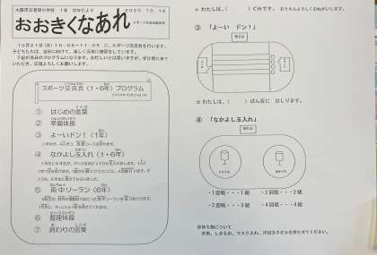 プログラムや競技、自分が何レース目に走るかなどを書いた「学年だより」を本日配布しております。