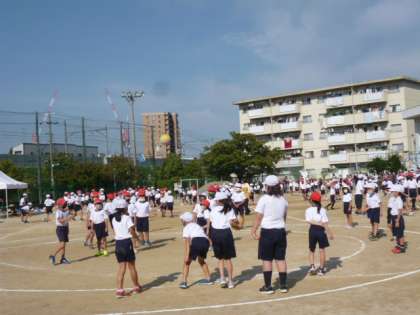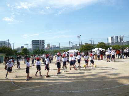 上の学年は頼もしいお兄さんお姉さんとして、下の学年を優しくエスコートしていました。2年生と4年生は、ゆらゆらボール運びと、きょうだい班わくわくドッジボールを楽しみました。2年生はボールを投げて、4年生は転がして対戦します。