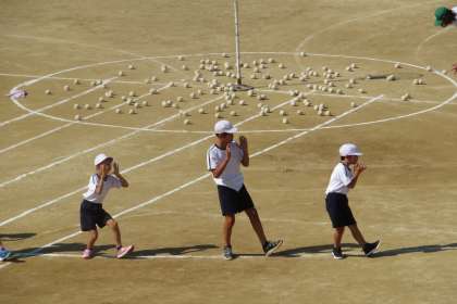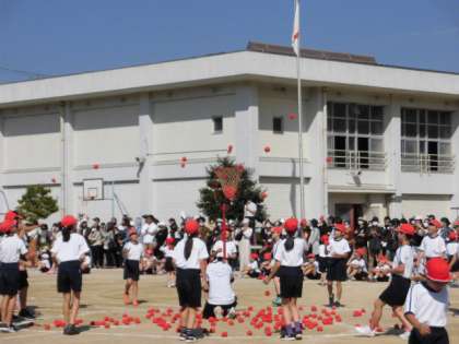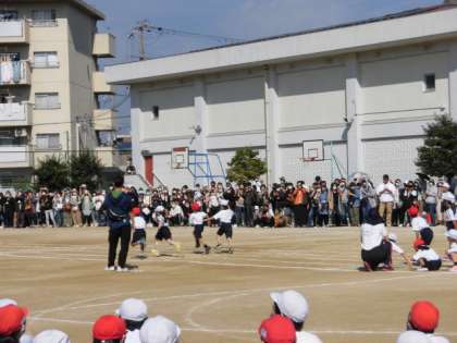 1年生は、かけっこと玉入れをしました。かけっこは、一生懸命ゴールを目指して走り抜けることができました。ゴールした後も友達を拍手で応援する姿が見られました。玉入れは、6年生と一緒に手をいっぱいに広げて大きくダンスし、玉を入れるときも楽しんでいる様子でした。最後には6年生のソーラン節を見て「かっこいい!」と言っていました。素敵なおにいさん・おねえさんの姿に目を奪われましたね(^^)