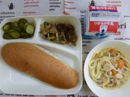 スープスパゲッティのスープには、ホタテのだしがしっかり出ており、からいりしたベーコンやトマトとの取り合わせも絶妙で、美味しくいただきました。