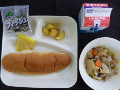 早いもので10月も終わり。大学いもはまさに秋の味覚です。中華煮も、豚肉といかとたっぷりの野菜にとろりとしたあんが絡み、深まりゆく秋にぴったりの献立です。