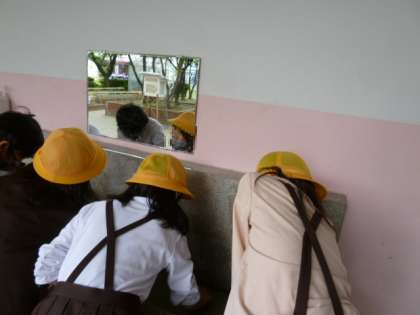 休み時間の終わり、手洗いの音楽が鳴っている時間の風景です。