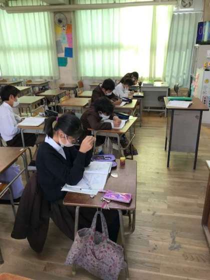 算数では、「図形の拡大と縮小」の単元を習熟度別に分かれて学習しています。