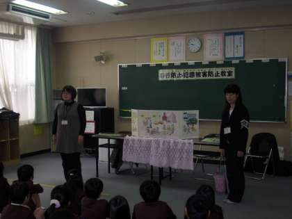 梅田少年サポートセンターから2名のセンター員の方に来ていただき、非行防止についての授業をしていただきました。人形劇などを用いて、わかりやすく教えていただきました。子どもたちも真剣になって学んでいたようです。