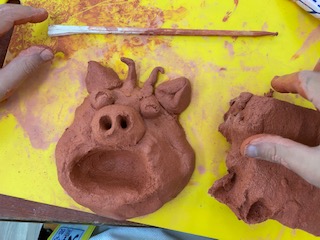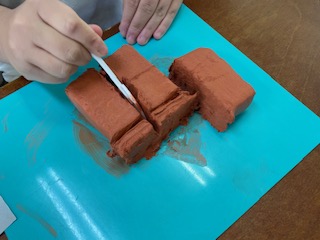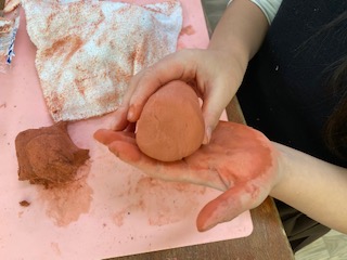 次に、粘土(顔)を丸めました。そして、鼻を付けました。