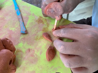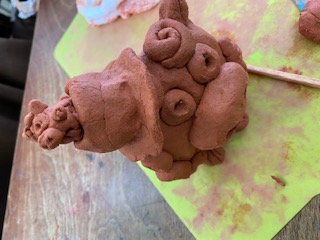 立っているシーサーや座っているシーサー、笑っているシーサーや目が真ん丸のシーサー、巻き髪をたくさん付けたシーサー、珍しい尻尾のシーサーなどなどいろいろなシーサーがいますよ!作品展が楽しみですね!