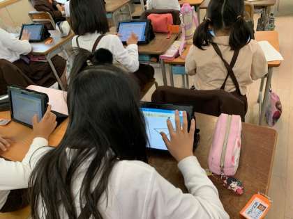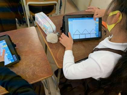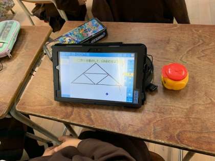 タブレットの発表ノートを使って学習しました。今日のめあては「□や△を組み合わせて形をつくろう」です。図形を「動かしたい」「回転させたい」「小さくさせたい」などのためにどんな操作をする必要があるのか、みんな夢中になって取り組みました。どんな操作をしたのか、自分の言葉で発表することもできました☆