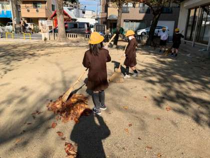 今日は1組は菅原西公園、2・3組は菅原北公園を地域の方と清掃活動をしました。落ち葉でいっぱいの公園をきれいにしました☆