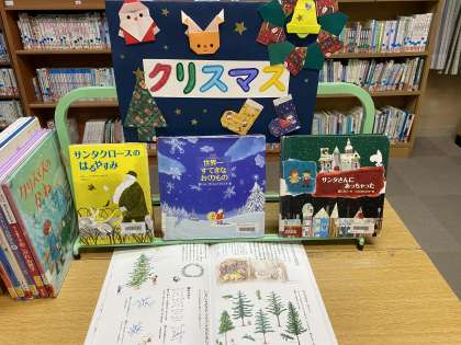 学校図書館補助員さんが、「クリスマスの本」というミニコーナーを作ってくださいました!
