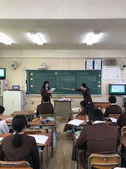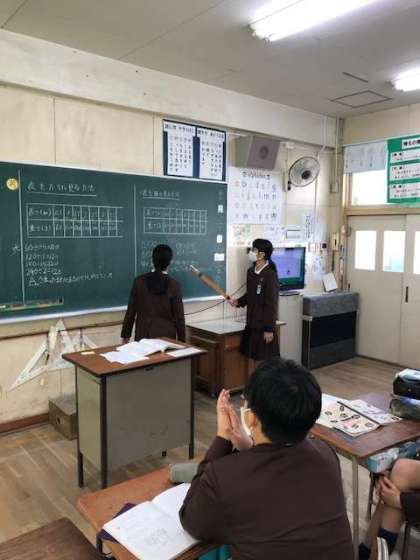 比例と反比例の学習をしています。ペアで前に出て発表しました。