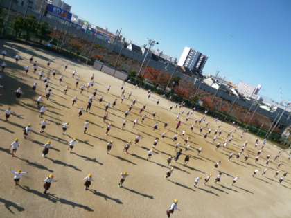 みんなさすがに音楽に合わせた跳び方を覚え、上手に跳べるようになっています。