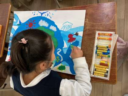 クレパスでしっかりと色を塗りこんで、丁寧に仕上げています。