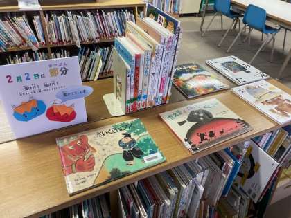 「節分にちなんで、鬼が登場する本のコーナ—」