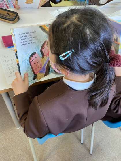 図書の時間に3分間読書をしました。いろいろな分野の本を3分間読んで続きが読んでみたいか考えます。集中して本を読んでいました。様々な本に興味をもつ良い機会になりました。