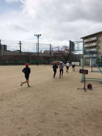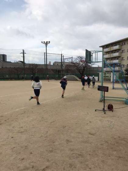 運動場では、持久走に取り組んでいます。今日は10周のタイムを計りました。