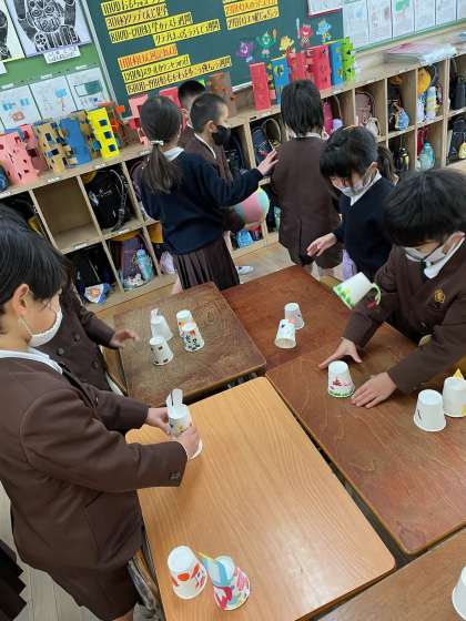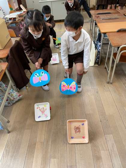 おもちゃまつりで1年生に遊んでもらった後は自分たちの番です。生活科の時間に楽しく遊びました。おもちゃを持って帰りますので、またお家でも遊んでみてくださいね。