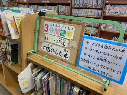 先週まで各学級で取り組んだ3分間読書に使用していた本が貸し出しできるようになりました。