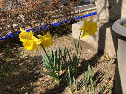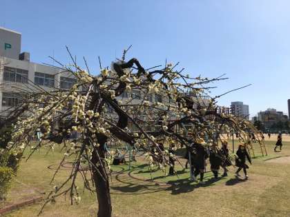 今日はポカポカ陽気の一日でした。お花も、子どもたちの姿も、青空に映えています。