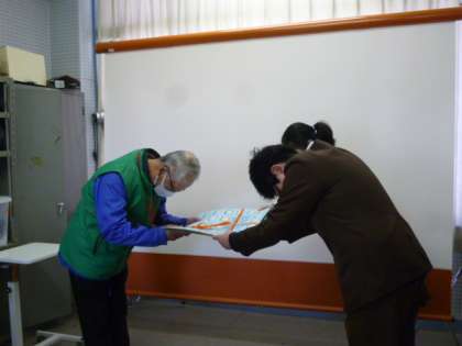 今年度は、児童全員がお礼の言葉を寄せ書きにして、プレゼントしました。菅原地域の老人憩いの家に掲示して、みなさんで見てくださるそうです。