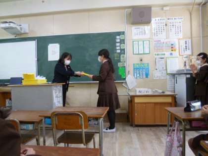 みんなの前で自分の考えた標語を発表し、拍手をたくさんもらっていました。
