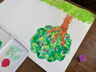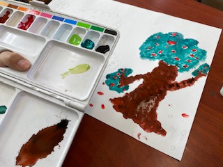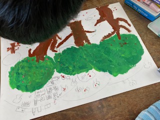 国語科の「世界一美しいぼくの村」という物語を学習しています。その美しい村を絵具を使って表しました。