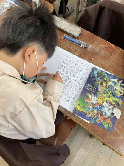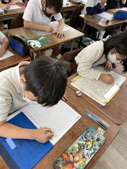 書写プリントで習った2年生の漢字、全部で160字を復習しています。一文字一文字丁寧に書けるようになってきました。難しい書き順の漢字もしっかり覚えましょう。