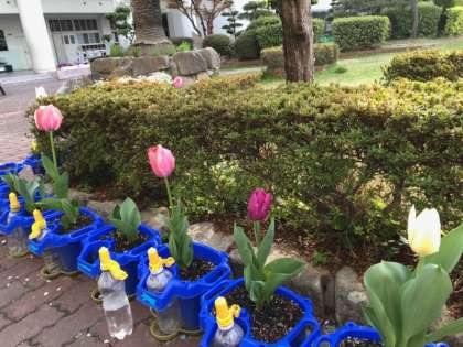 令和3年度がスタートしました。桜の花が満開。新2年生が植えたチューリップも、次々に花を咲かせています。まさに春爛漫です。