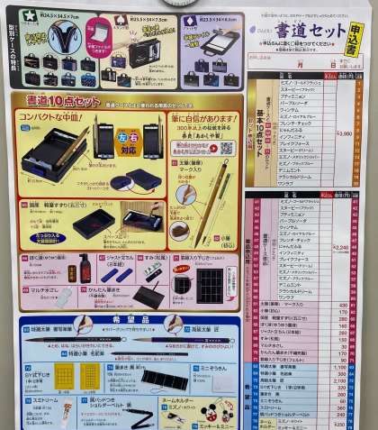 必要な物は、太筆、小筆、すずり、墨汁、下敷き、文ちんです。